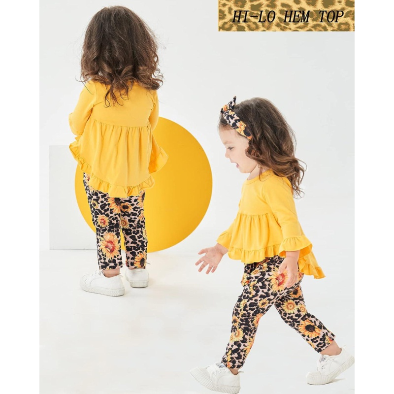 Baby Girl Clothes Toddler Girl Sunflower Outfit Ruffle Sleeve Shirt Floral Pant Set Fall Winter Clothing for Girl