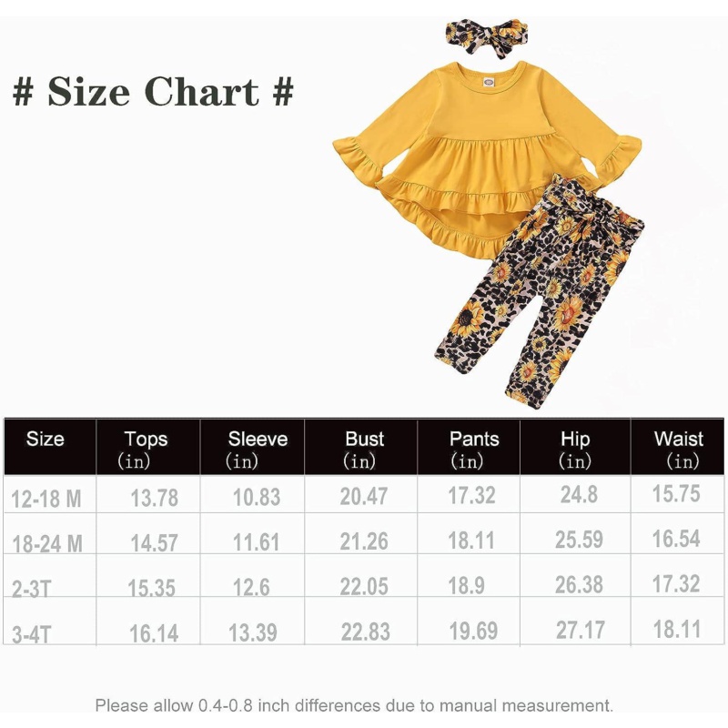 Be the first to review “Baby Girl Clothes Toddler Girl Sunflower Outfit Ruffle Sleeve Shirt Floral Pant Set Fall Winter Clothing for Girl” Cancel reply