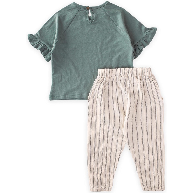 Cigit Concept Girls Just Breathe Printed T-Shirt and Muslin Trousers 100% Cotton Set – Green (2-8 Years)