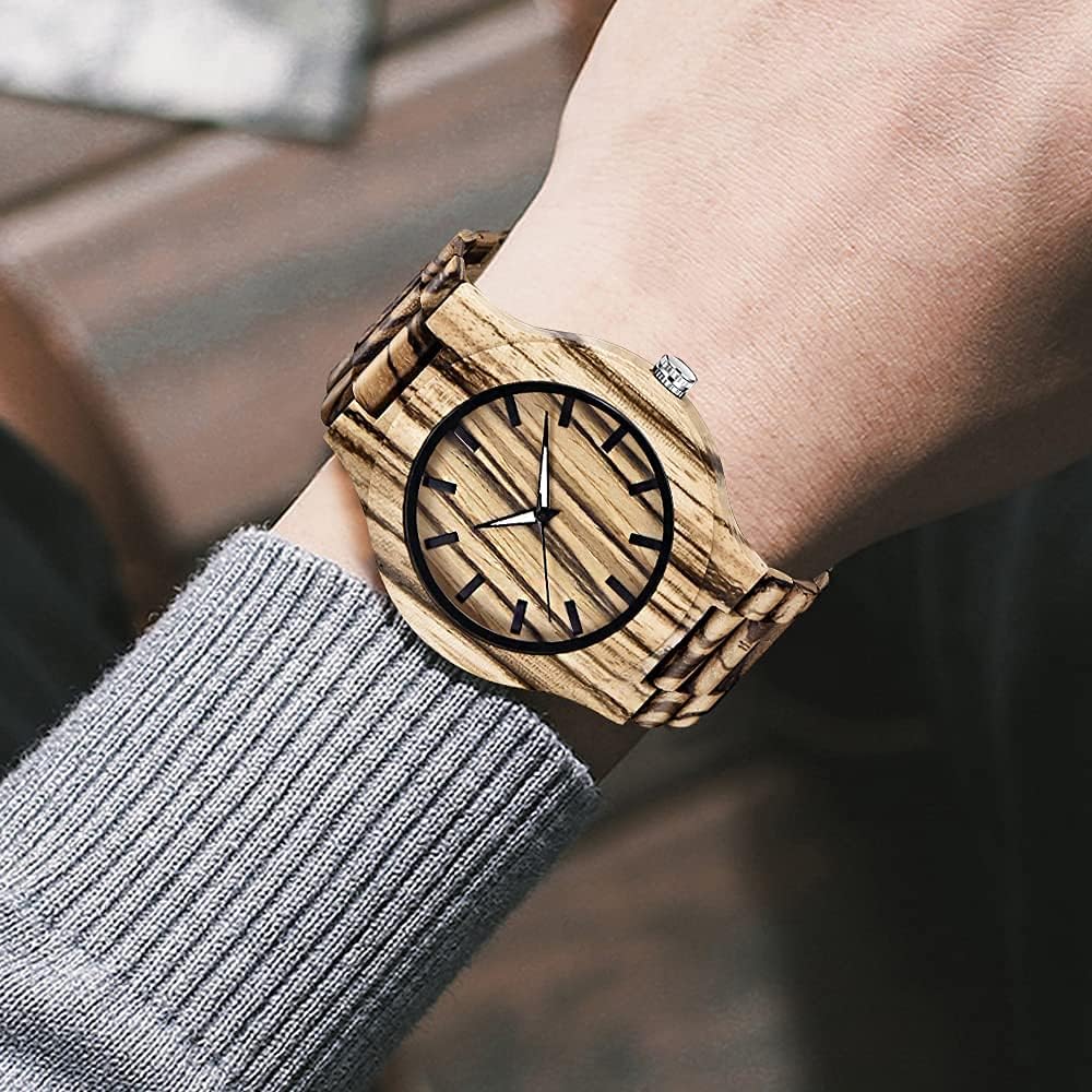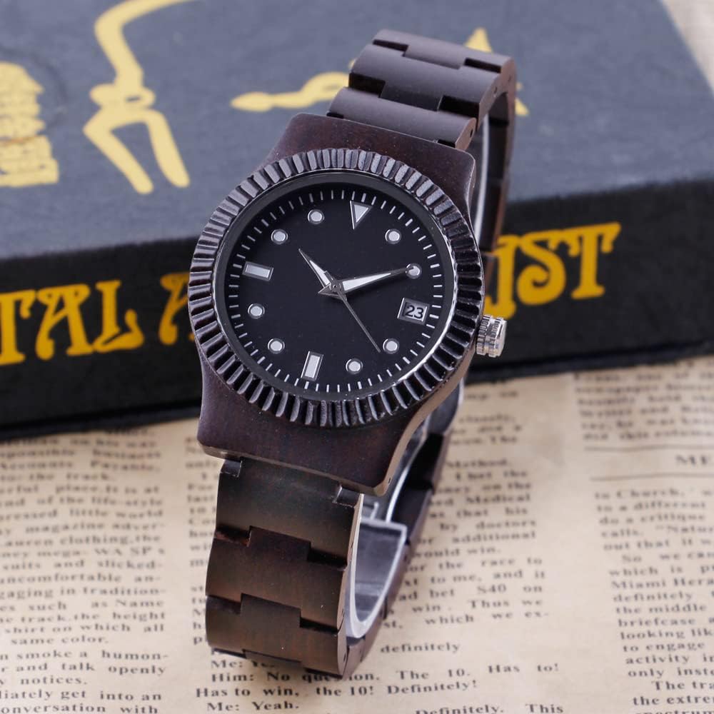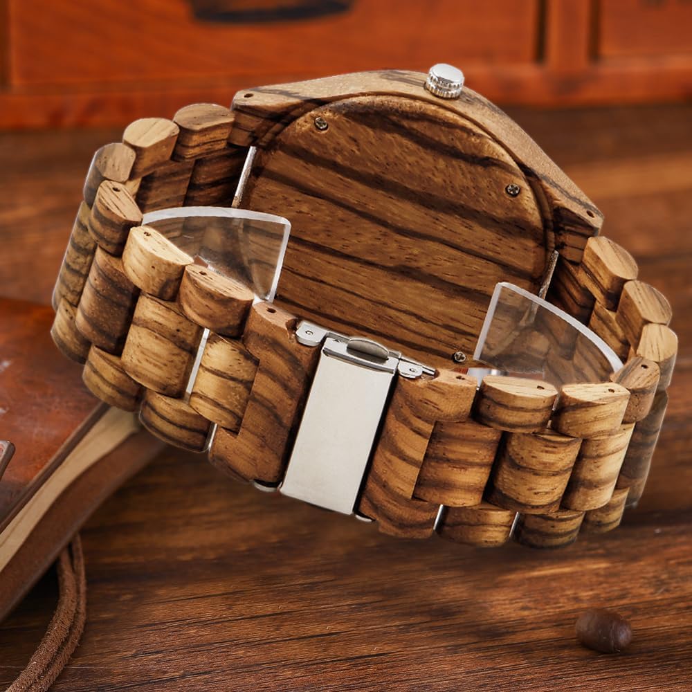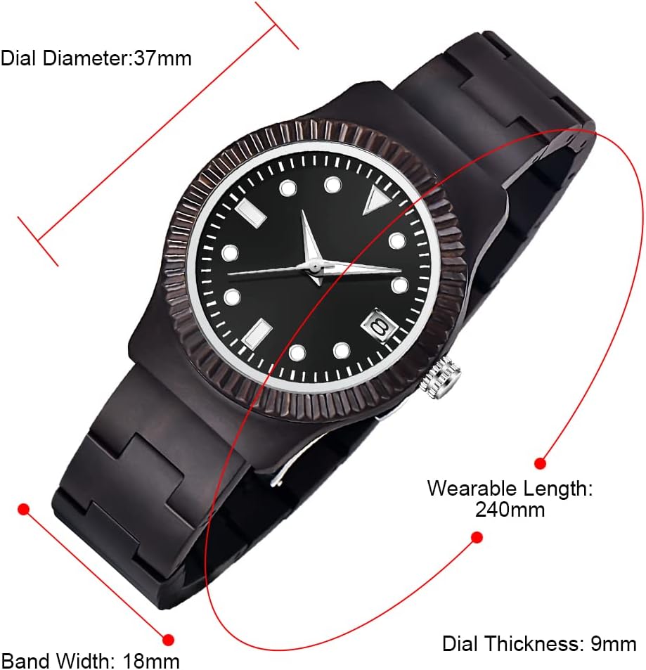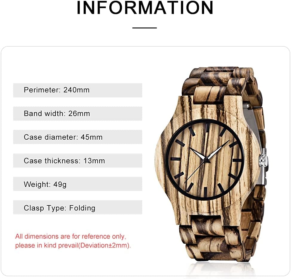 - 【Function 】: 100% manual wooden watch , use natural wood, no paint (non-toxic, hypoallergenic), 12 hour format, date display, Users can see the time and date at a glance