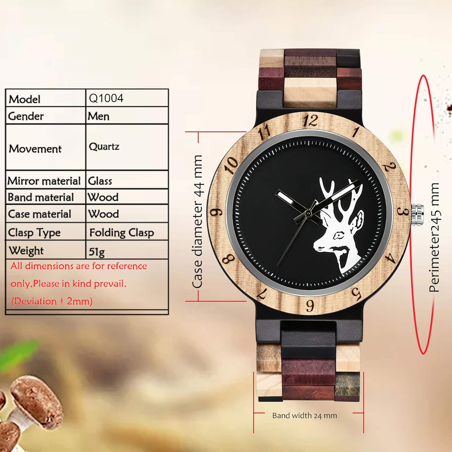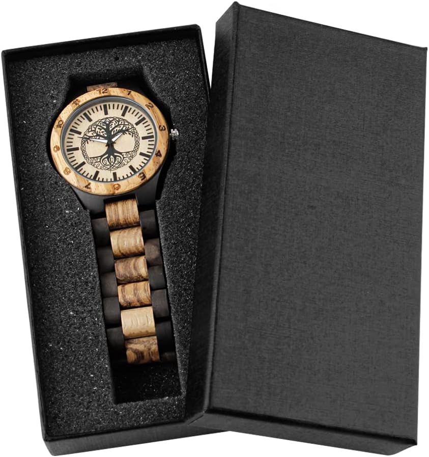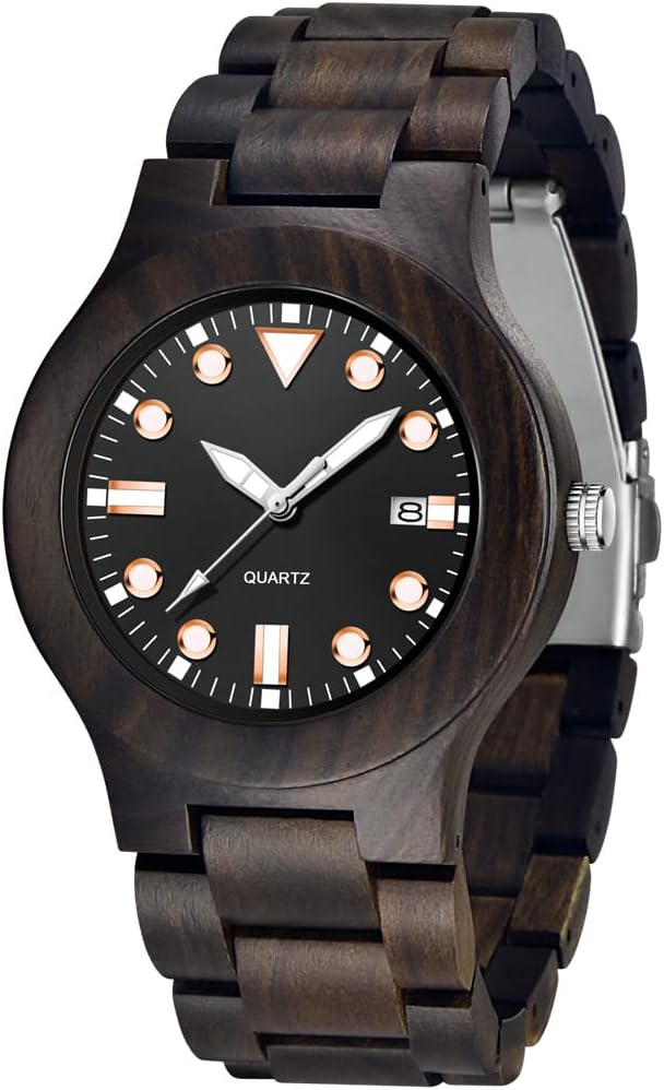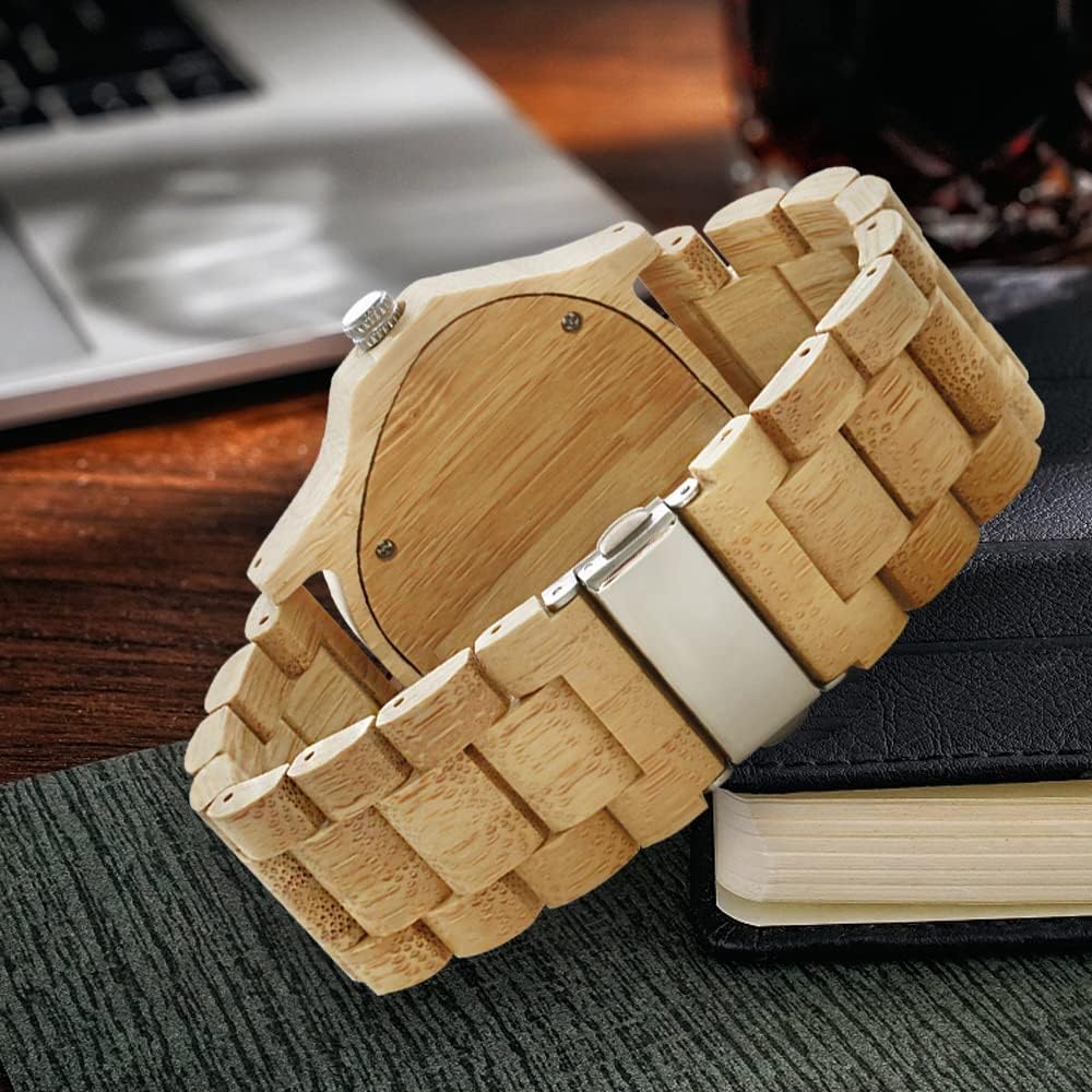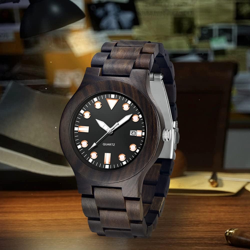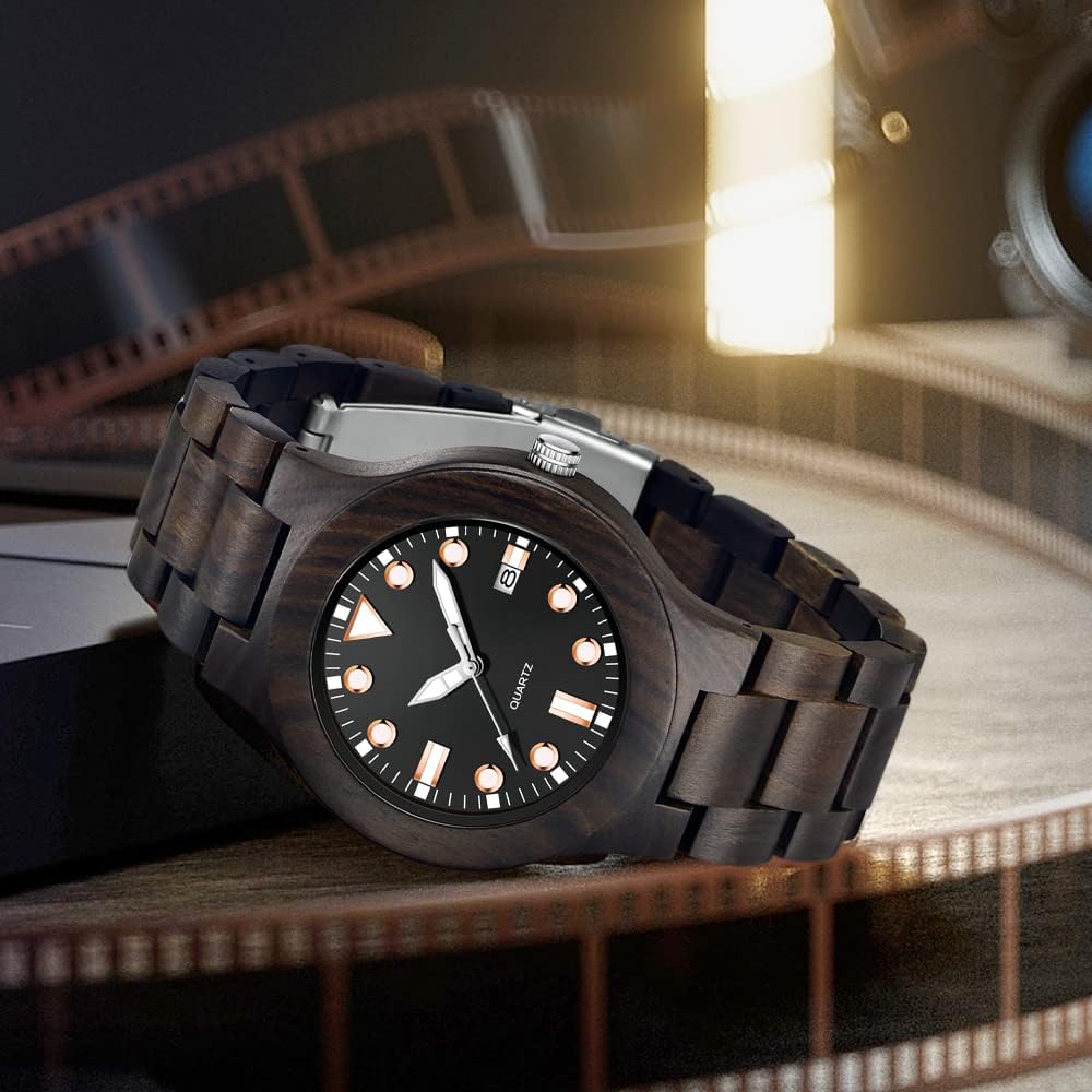 - 【Function 】: 100% manual wooden watch , use natural wood, no paint (non-toxic, hypoallergenic), 12 hour format, date display, Users can see the time and date at a glance