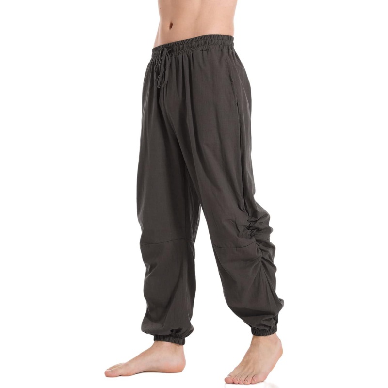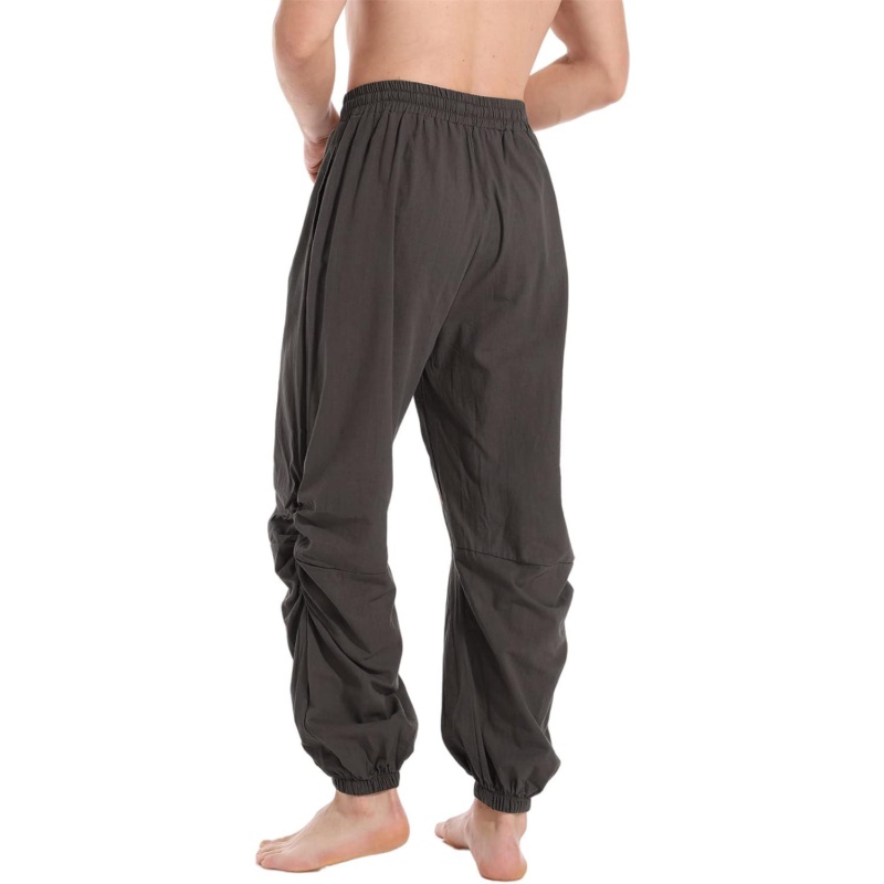 perdontoo Mens Cotton Linen Drawstring Elastic Waist Casual Jogger Yoga Pants