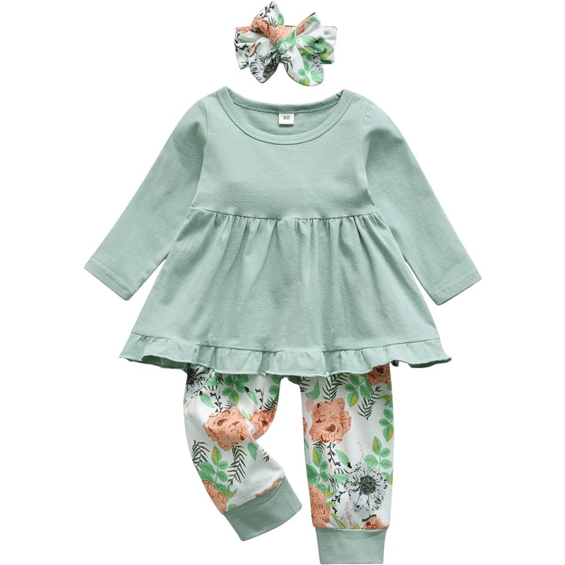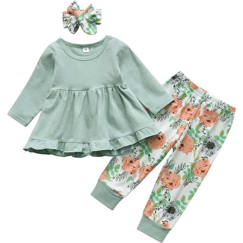 Kulcerry Toddler Baby Girl Clothes Solid Color Long Sleeve Ruffle Tops Pants Headband Outfits Set