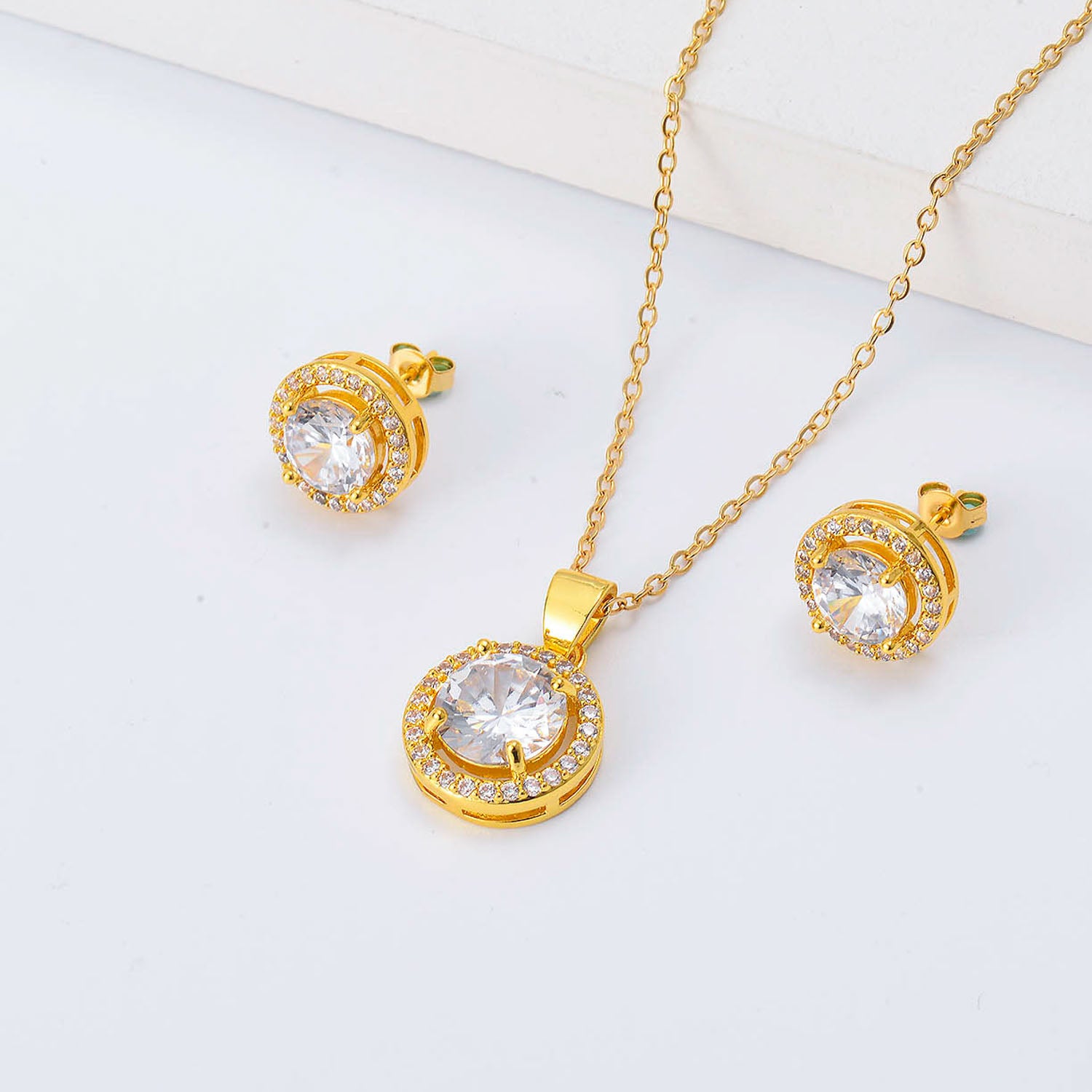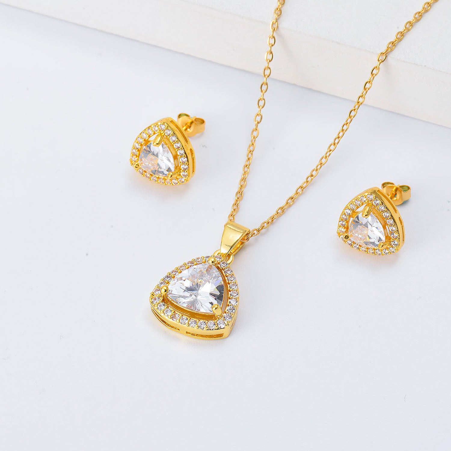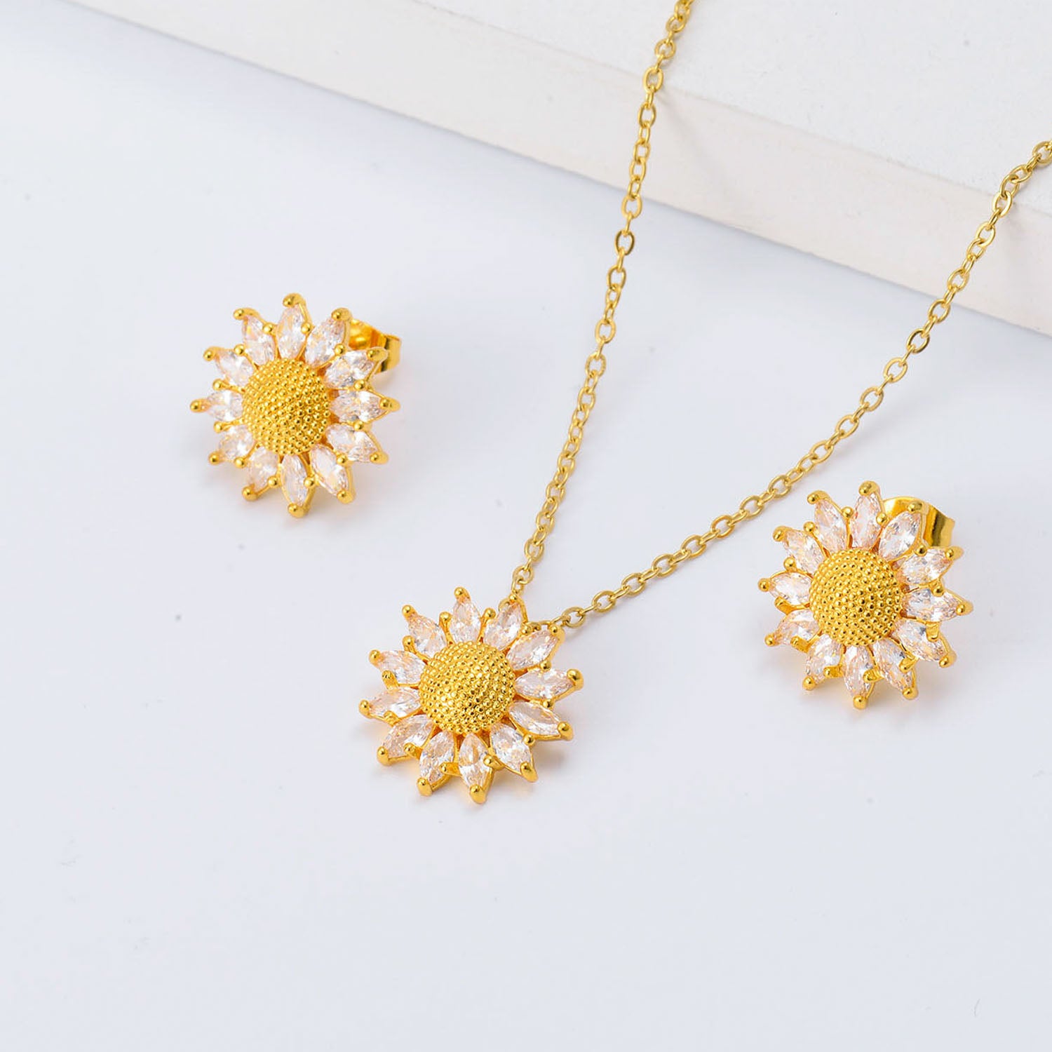 cute gold plated daisy with zirconia necklace earrings jewelry set