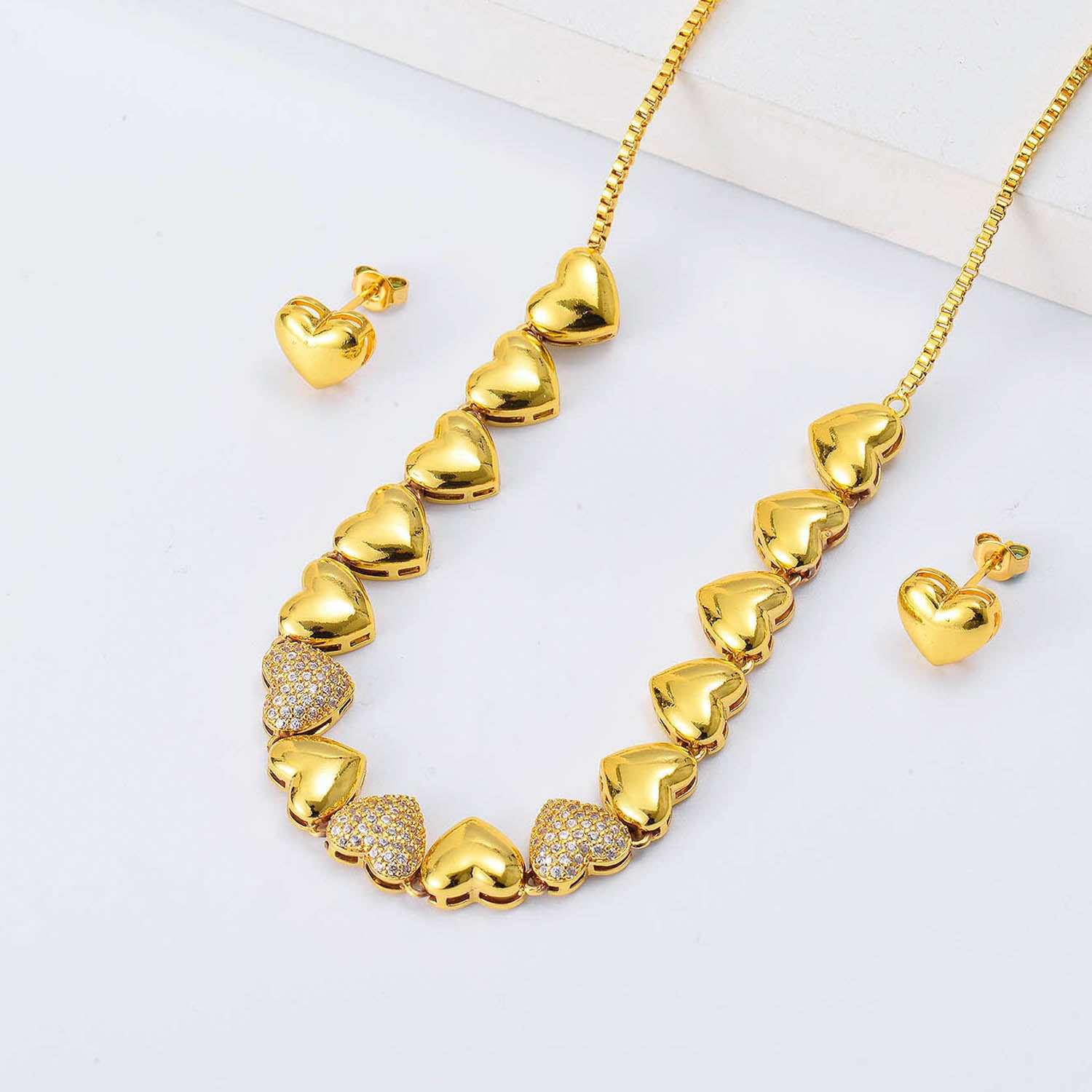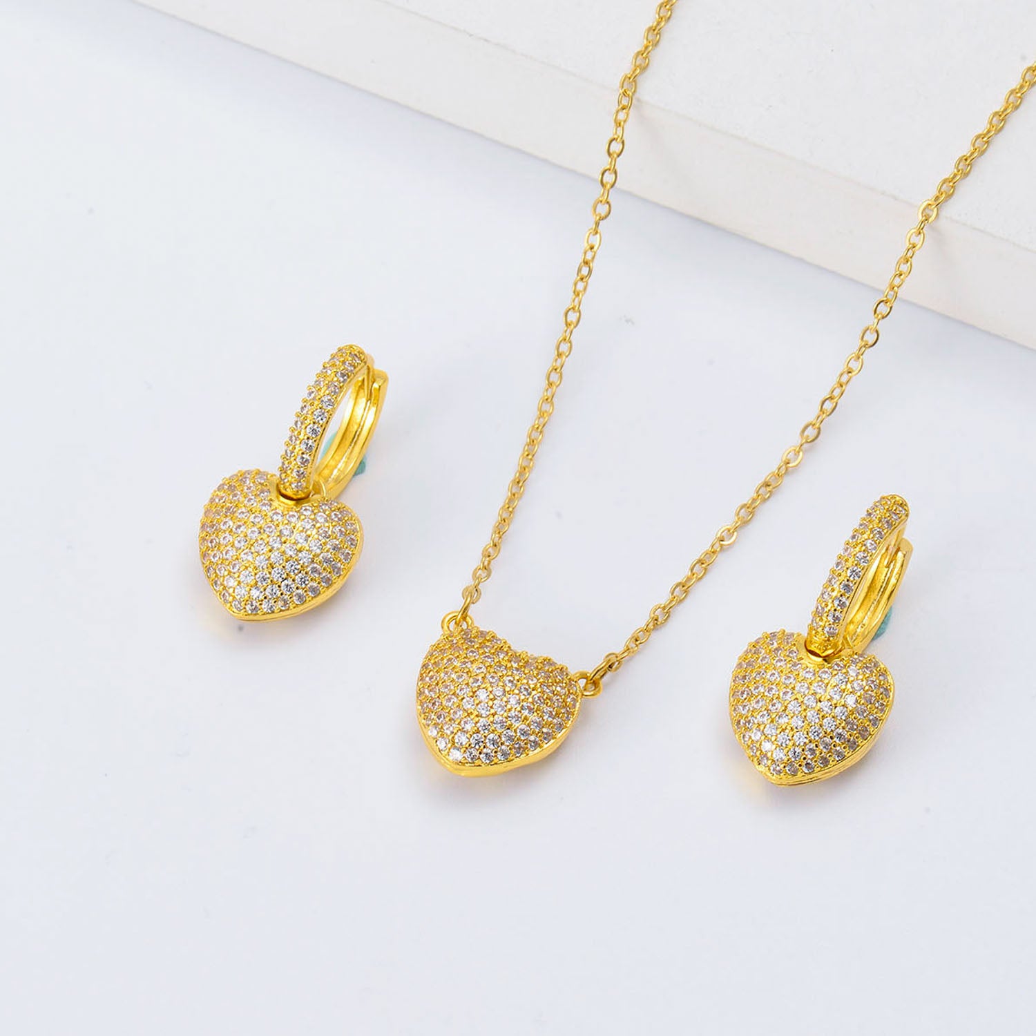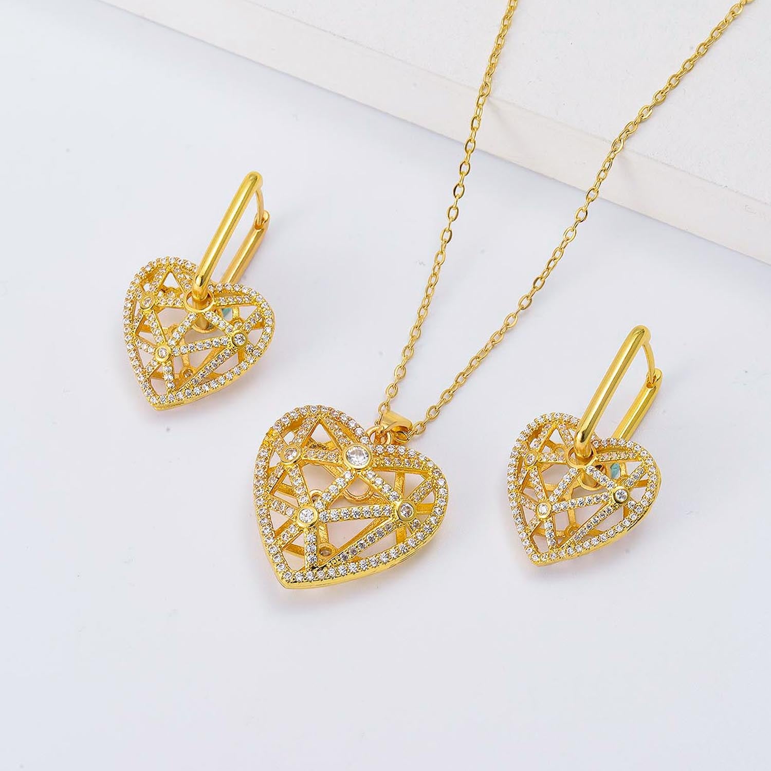 cute gold plated daisy with zirconia necklace earrings jewelry set