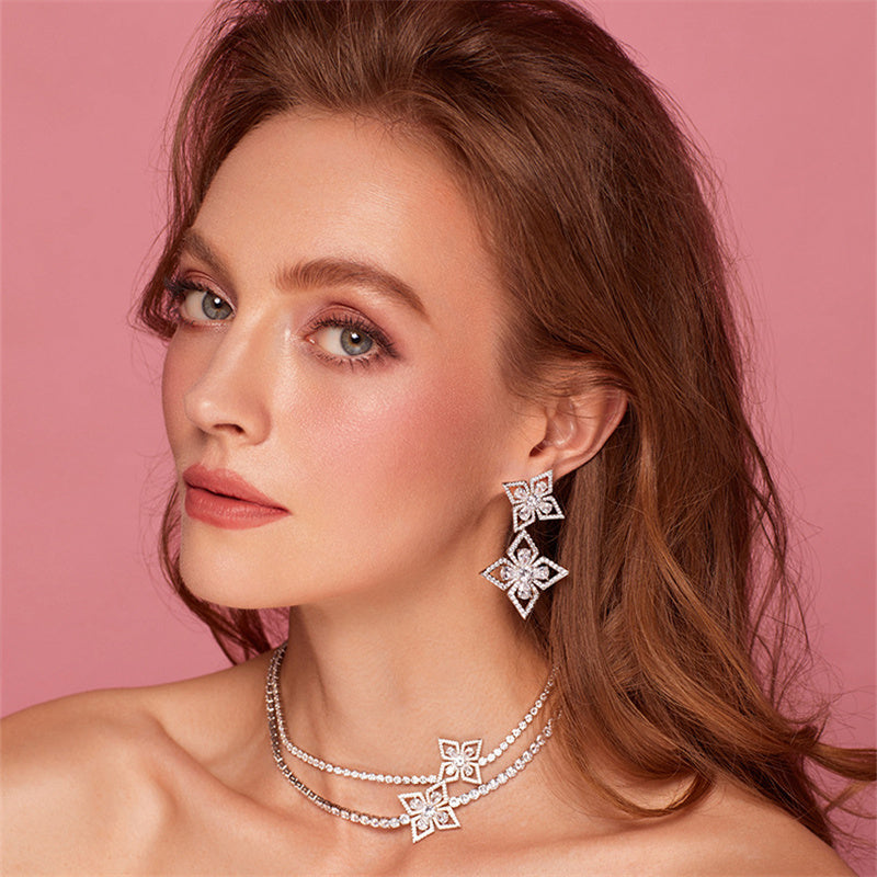 Four Leaf Clover Double Layer Necklace and earrings set for women
